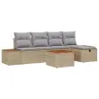vidaXL Vrtna sedežna garnitura z blazino 6 pcs Bež Poly ratan