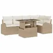 vidaXL Vrtna sedežna garnitura z blazino 6 pcs Bež Poly ratan