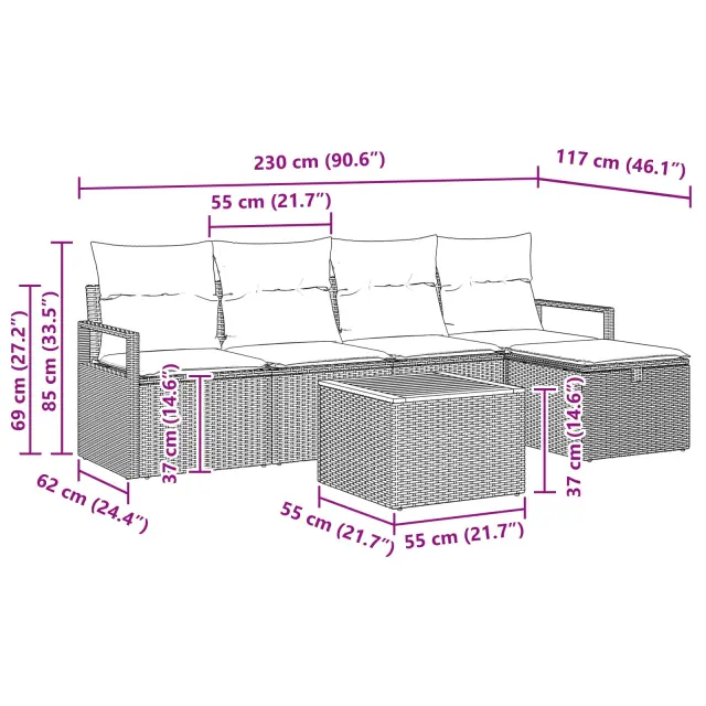 vidaXL Vrtna sedežna garnitura z blazino 6 pcs Bež Poly ratan