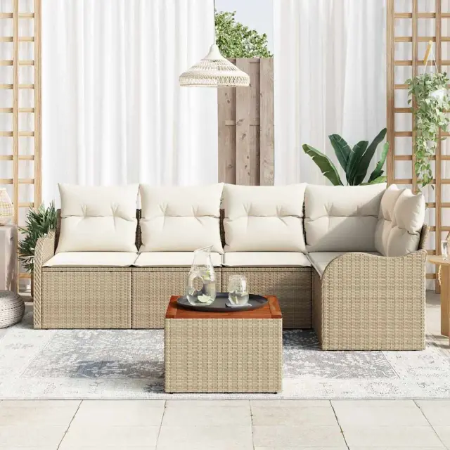 vidaXL Vrtna sedežna garnitura z blazino 6 pcs Bež poli ratan