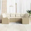 vidaXL Vrtna sedežna garnitura z blazino 6 pcs Bež Poly ratan