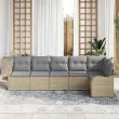 vidaXL Vrtna sedežna garnitura z blazino 6 pcs Bež Poly ratan