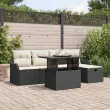 vidaXL Vrtna sedežna garnitura z blazino 6 pcs Črna Poly ratan