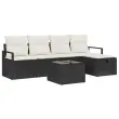vidaXL Vrtna sedežna garnitura z blazino 6 pcs Črna Poly ratan