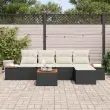 vidaXL Vrtna sedežna garnitura z blazino 6 pcs Črna in krem Poliratan