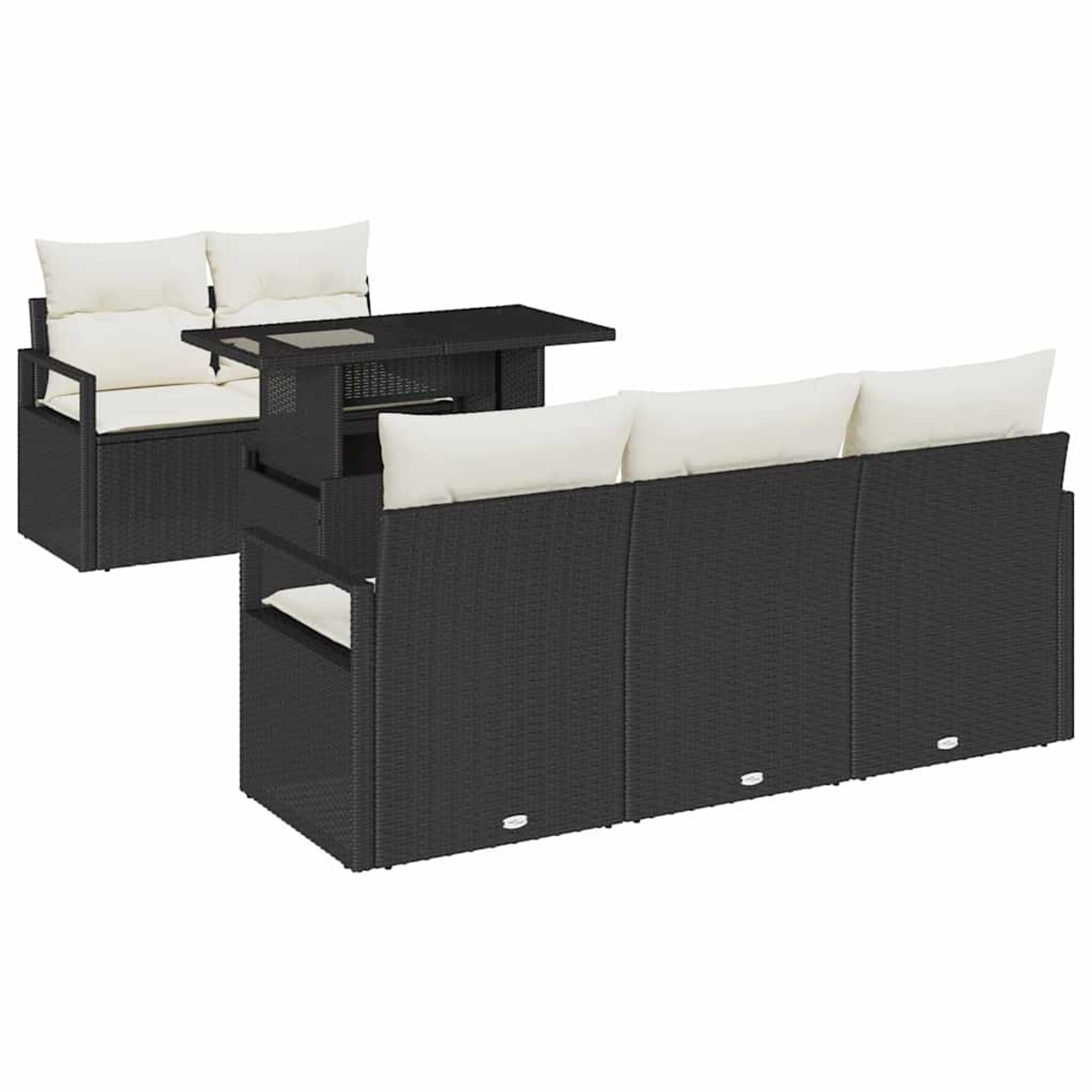 vidaXL Vrtna sedežna garnitura z blazino 6 pcs Črna Poly ratan