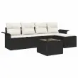 vidaXL Vrtna sedežna garnitura z blazino 6 pcs Črna poli ratan