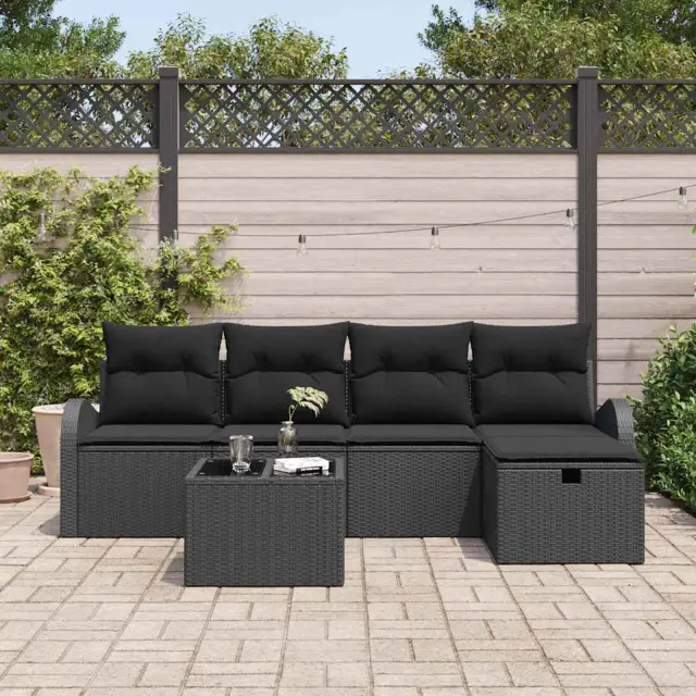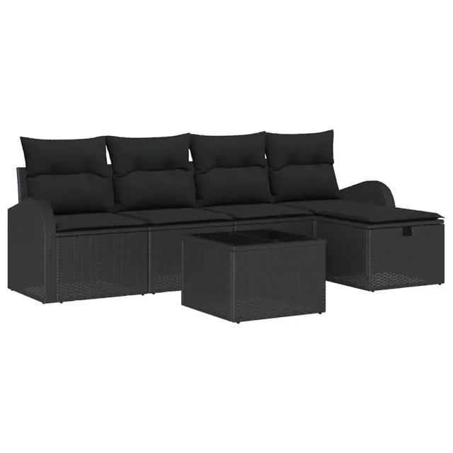 vidaXL Vrtna sedežna garnitura z blazino 6 pcs Črna Poly ratan