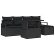 vidaXL Vrtna sedežna garnitura z blazino 6 pcs Črna Poly ratan
