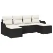 vidaXL Vrtna sedežna garnitura z blazino 6 pcs Črna in bela Poly ratan