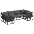 Ta sedežna garnitura za vrt je moderna rešitev za sedenje, zasnovana za izboljšanje zunanjih prostorov, kot so vrtovi in terase. Čiste linije in minimalistični videz prinašajo eleganten stil, ki se zlije z okolico. Zasnovana je za tiste, ki cenijo obliko in funkcionalnost, vsak detajl od konstrukcije do oblazinjenja govori o stilu in praktičnosti. Ta garnitura ponuja udobje, ki vabi na sproščujoče druženje, od spomladanskih večerov do poletnih popoldnevov.