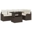 vidaXL Vrtna sedežna garnitura z blazino 6 pcs Rjava Poly ratan