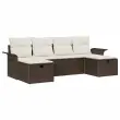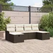 vidaXL Vrtna sedežna garnitura z blazino 6 pcs Rjava Poly ratan