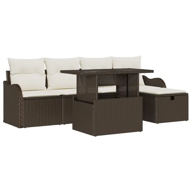vidaXL Vrtna sedežna garnitura z blazino 6 pcs Rjava Poly ratan