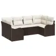 vidaXL Vrtna sedežna garnitura z blazino 6 pcs Rjava Poly ratan