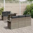 vidaXL Vrtna sedežna garnitura z blazino 6 pcs Siva Poly ratan