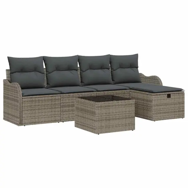 vidaXL Vrtna sedežna garnitura z blazino 6 pcs Siva poli ratan