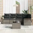 vidaXL Vrtna sedežna garnitura z blazino 6 pcs Siva Poly ratan