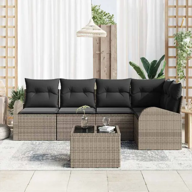 vidaXL Vrtna sedežna garnitura z blazino 6 pcs Siva poli ratan