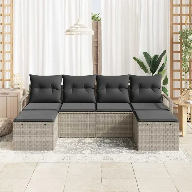 vidaXL Vrtna sedežna garnitura z blazino 6 pcs Svetlo siva