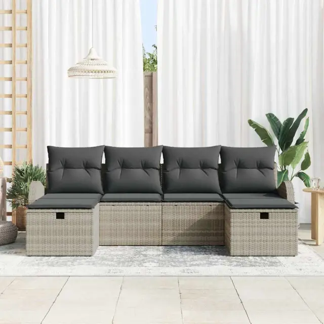vidaXL Vrtna sedežna garnitura z blazino 6 pcs Svetlo siva Poly ratan