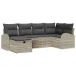 vidaXL Vrtna sedežna garnitura z blazino 6 pcs Svetlo siva Poly ratan