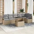 vidaXL Vrtna sedežna garnitura z blazino 7 pcs Bež Poly ratan