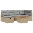 vidaXL Vrtna sedežna garnitura z blazino 7 pcs Bež Poly ratan
