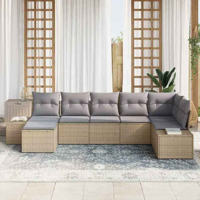 Ta moderna sofa set za vrt je idealen dodatek za vsako zunanjo površino, saj nudi stil in funkcionalnost s svojo modularno zasnovo in trdno konstrukcijo. Užij sonce na svoji terasi ali vrtu s to prostorno sekcijsko sofom, ki te vabi k sprostitvi s svojimi udobnimi blazinami in čistimi, modernimi linijami. Popoln za pomladne in poletne druženja, lahko modularna sedežna garnitura enostavno spremeniš, da ustreza različnim nastavitvam, bodisi pri zabavljanju gostov ali uživanju v mirnem dnevu na prostem.
