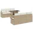 vidaXL Vrtna sedežna garnitura z blazino 7 pcs Bež Poly ratan