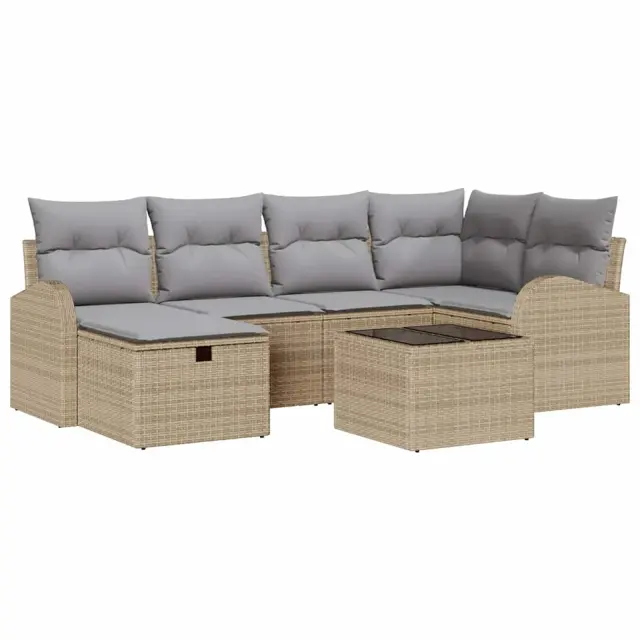 vidaXL Vrtna sedežna garnitura z blazino 7 pcs Bež Poly ratan