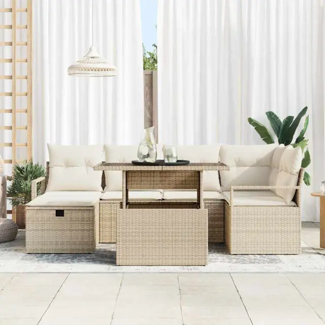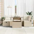 vidaXL Vrtna sedežna garnitura z blazino 7 pcs Bež Poly ratan