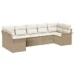 vidaXL Vrtna sedežna garnitura z blazino 7 pcs Bež Poly ratan