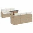 vidaXL Vrtna sedežna garnitura z blazino 7 pcs Bež Poly ratan