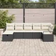 vidaXL Vrtna sedežna garnitura z blazino 7 pcs Črna Poly ratan