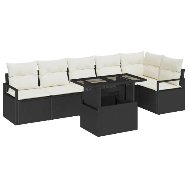 vidaXL Vrtna sedežna garnitura z blazino 7 pcs Črna Poly ratan