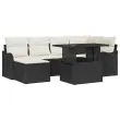 vidaXL Vrtna sedežna garnitura z blazino 7 pcs Črna Poly ratan