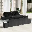 vidaXL Vrtna sedežna garnitura z blazino 7 pcs Črna 294 x 62 x 69 cm