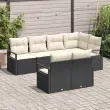 vidaXL Vrtna sedežna garnitura z blazino 7 pcs Črna in bela poli ratan