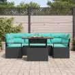 vidaXL Vrtna sedežna garnitura z blazino 7 pcs Črna in modra