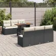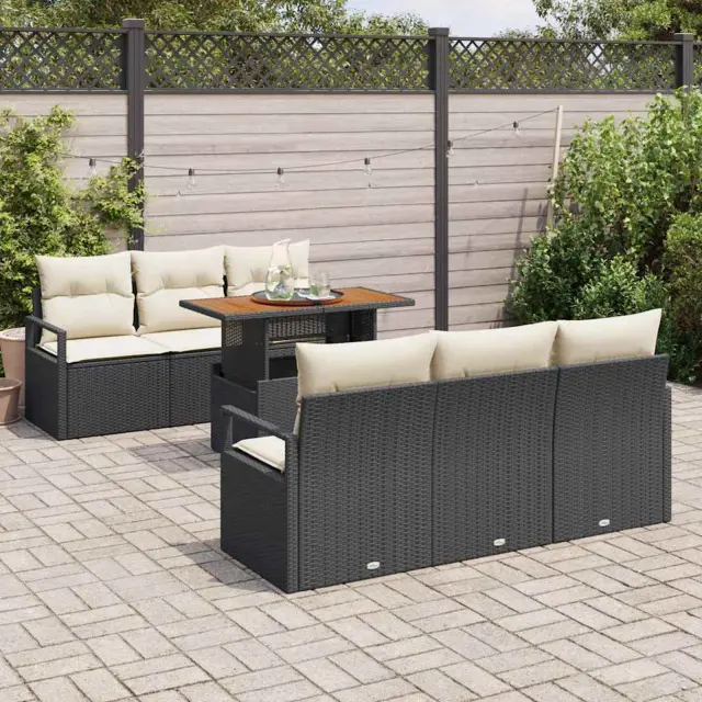 Ta vrtnični set s poliratanimi blazinami povezuje stil in praktičnost; je popolna izbira za vsako teraso ali vrt. Prepleten videz in eleganten dizajn prinašata sodoben in prijeten občutek, ki je super za družabne priložnosti ali lenobno sprostitev. Zasnovan za zunanje prostore, ta set dosega vse kriterije glede izgledu in uporabnosti, kar ga naredi pravi hit za vsakogar, ki ceni stil in funkcijo na prostem. Uporabljeni materiali so skrbno izbrani, da prenesejo različne vremenske razmere, kar zagotavlja, da izgledajo odlično in dolgo trajajo.