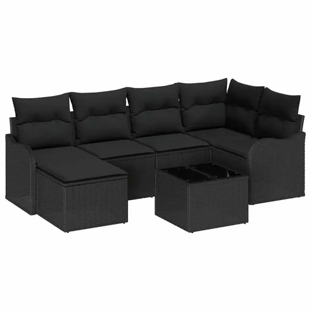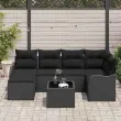 vidaXL Vrtna sedežna garnitura z blazino 7 pcs Črna Poly ratan
