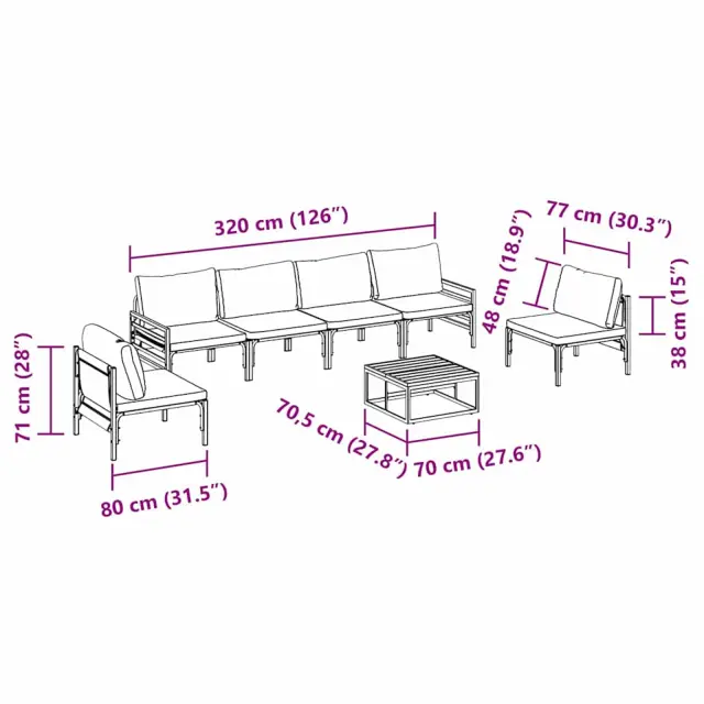 Ta set kavčev za zunjost, zasnovan preprosto in funkcionalno, preobrazi vsak zunanji prostor v prijeten kotiček. Z čistimi linijami in enostavno estetiko je odlična izbira za vrtove in terase. Njegov elegantni videz ter enotna temna barva mu dodata brezčasen čar, zaradi česar je idealen za druženja s prijatelji in družino, kjer se lahko sprostite v naravi.