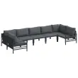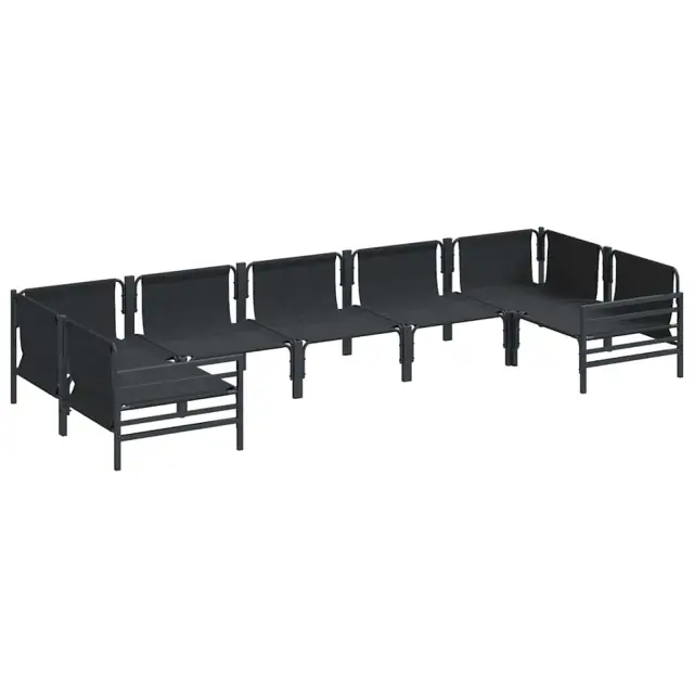 vidaXL Vrtna sedežna garnitura z blazino 7 pcs Črna Jeklo