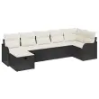 vidaXL Vrtna sedežna garnitura z blazino 7 pcs Črna Poly ratan