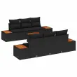 vidaXL Vrtna sedežna garnitura z blazino 7 pcs Črna Poly ratan