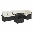 vidaXL Vrtna sedežna garnitura z blazino 7 pcs Črna Poly ratan