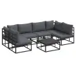 Ta vrtna sedežna garnitura je srce vašega zunanjega prostora, z čistimi linijami in minimalnim okrasjem. Zgrajena je iz trdnega aluminija in bledenju odporne tkanine, kar ji daje eleganten in hkrati robusten videz, idealen za terase in vrtove. Antracitna in črna barva dajeta sodoben izgled, ki obogati vsak zunanji prostor, zato je odlična izbira za družinska srečanja ali sproščanje. Uživajte v udobnem sedenju in trdni konstrukciji, ki je vredna malih in poletnih dni, ter združuje obliko z funkcionalnostjo.