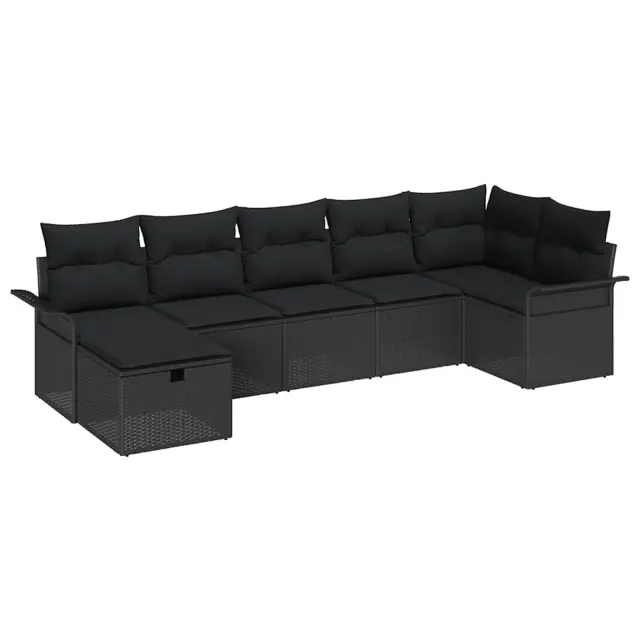 vidaXL Vrtna sedežna garnitura z blazino 7 pcs Črna Poly ratan