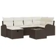 vidaXL Vrtna sedežna garnitura z blazino 7 pcs Rjava Poly ratan